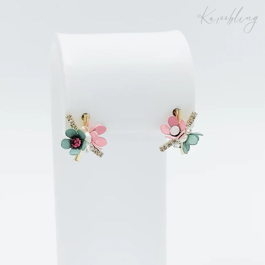 Gold Plated Pastel Floral Stud Earrings