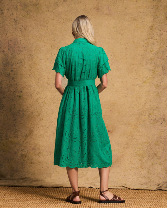 Fria Cotton Anglaise Dress - Green