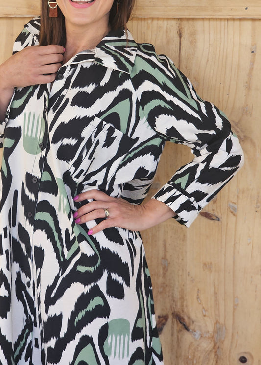 Kiara Shirt Dress - Pesto