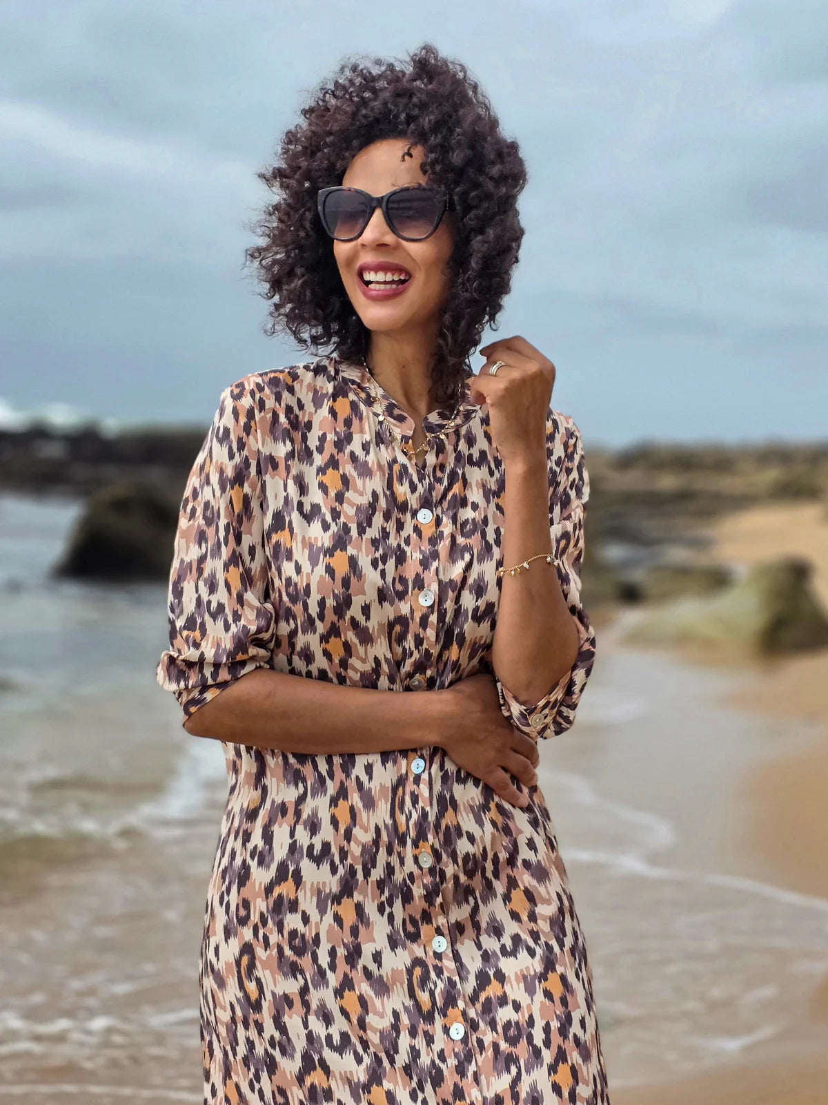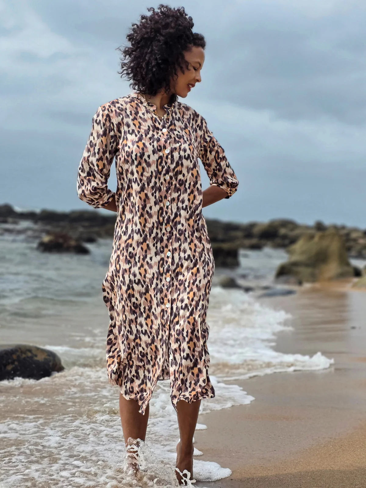 Description : The 3/4 length sleeves have been updated with a slender cuff and button. This relaxed fit dress is... Read more