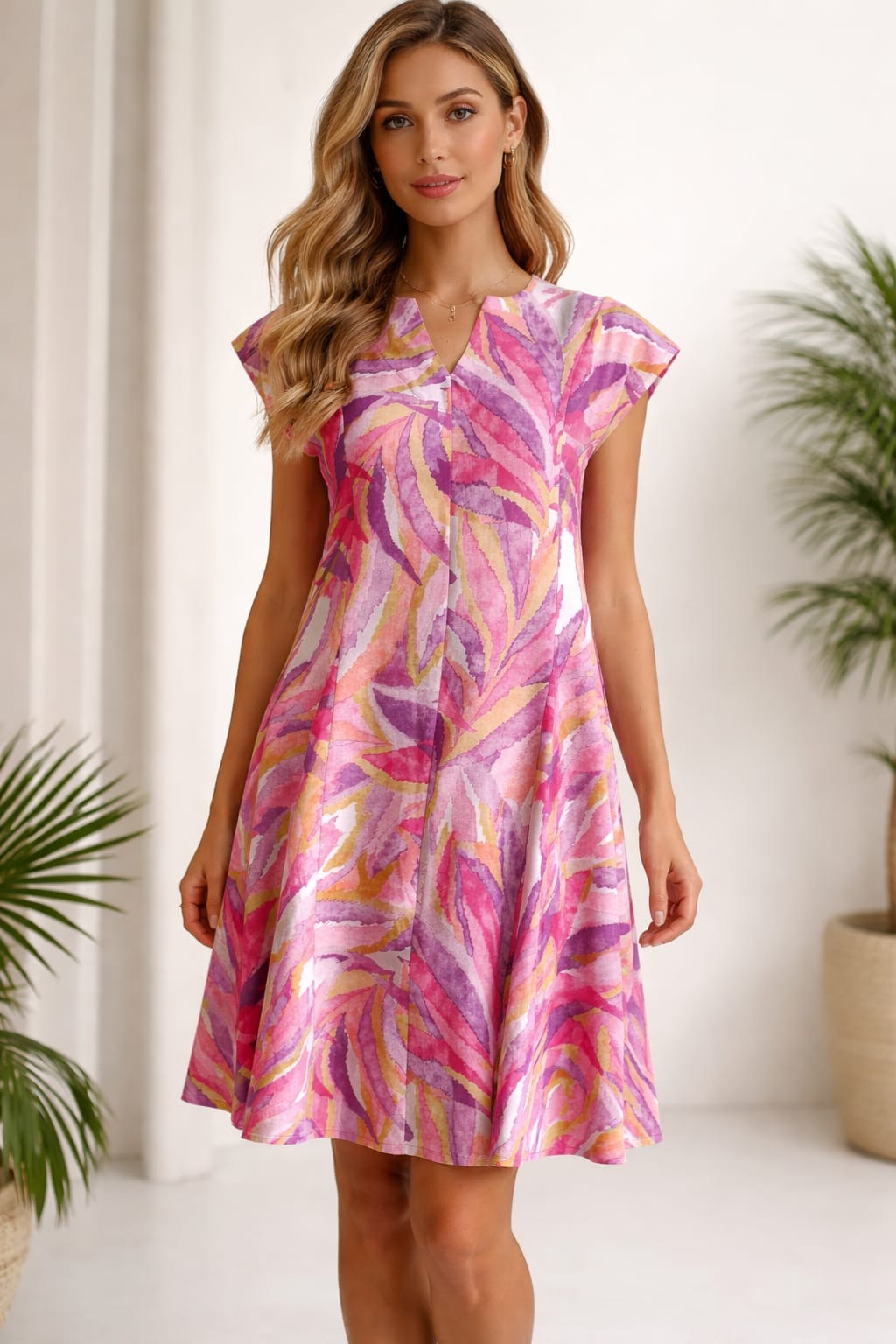 Description : Short cap sleeve dress with a V - Neckline. This is a loose fitting swing dress that is... Read more