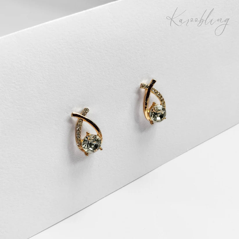 Description : These cross-over hollow out teardrop stud earrings feature a singular rhinestone nestled at the bottom of the inside... Read more