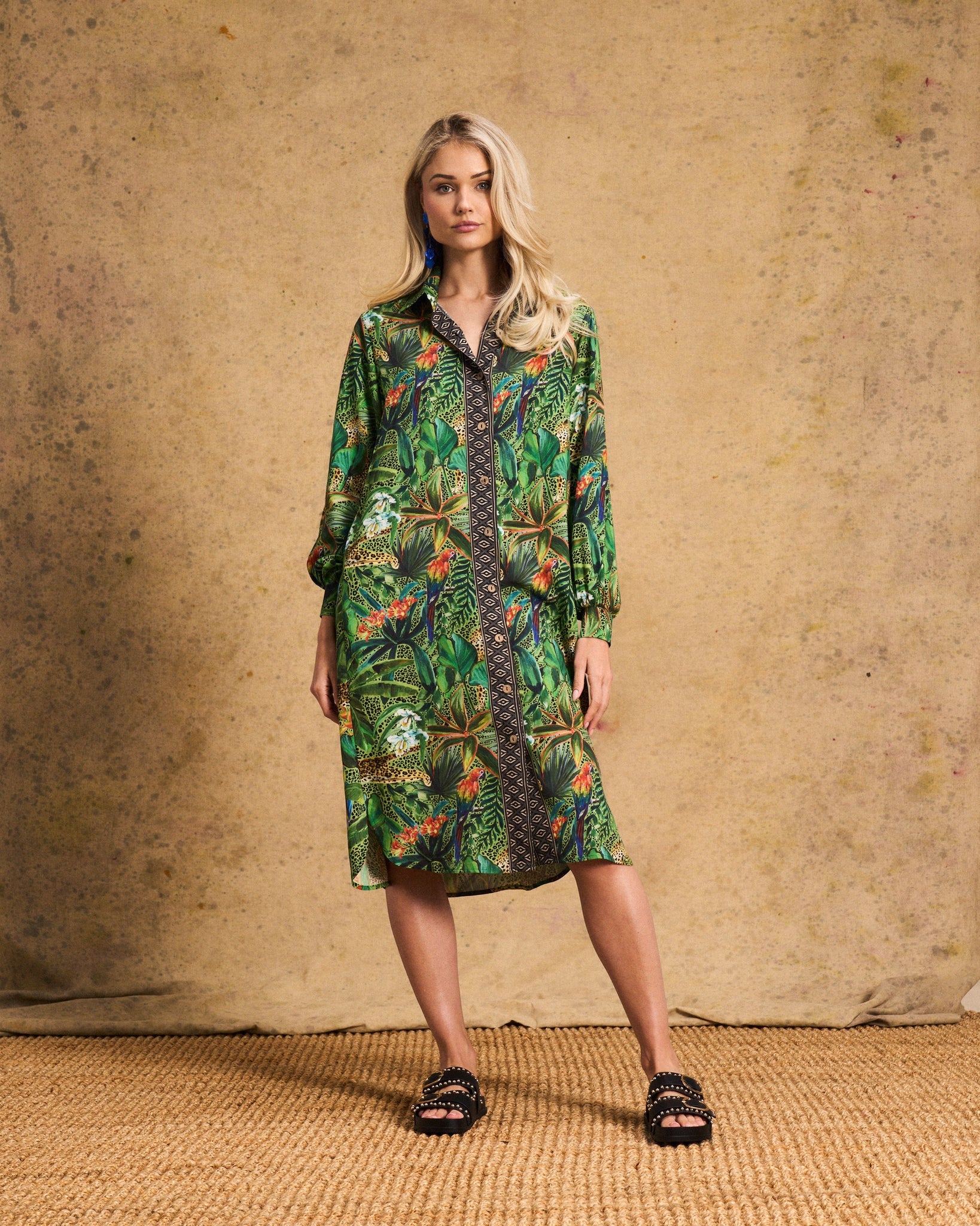 The Hailey Shirt Dress in Amazon Cheetah showcases an elegant pattern on breathable, lightweight pure viscose, offering exceptional comfort without compromising style. Featuring practical pockets, a coordinating belt, and subtle side slits, this dress is thoughtfully designed for ease of movement and a flattering fit. The button-front closure and classic silhouette make it a versatile layering piece