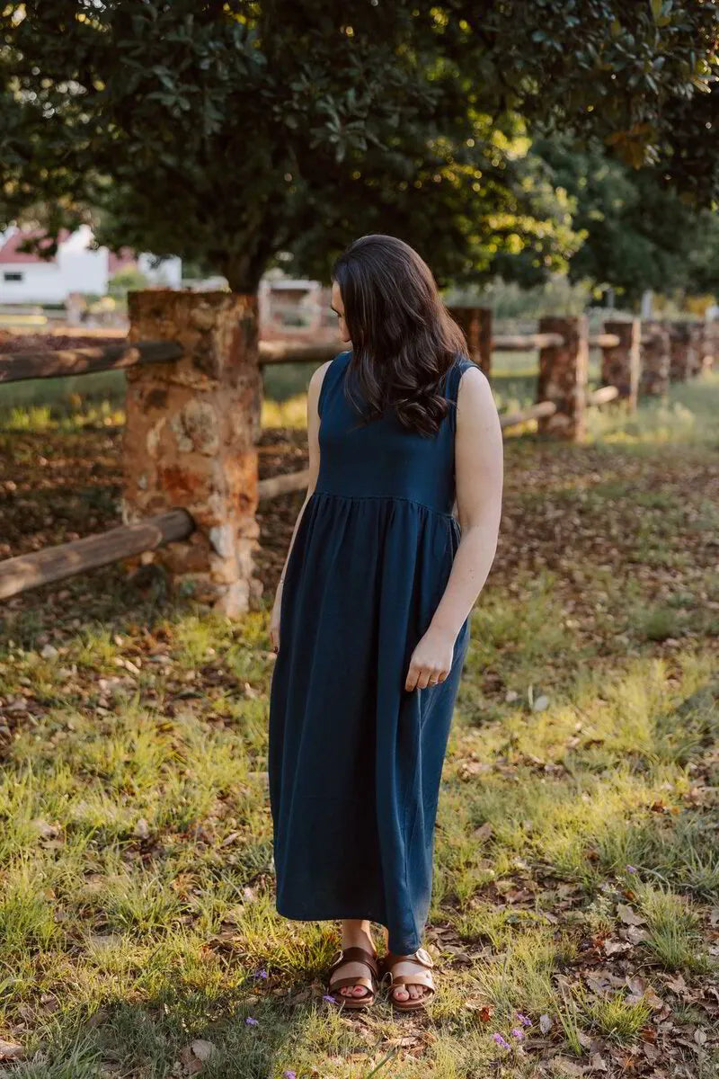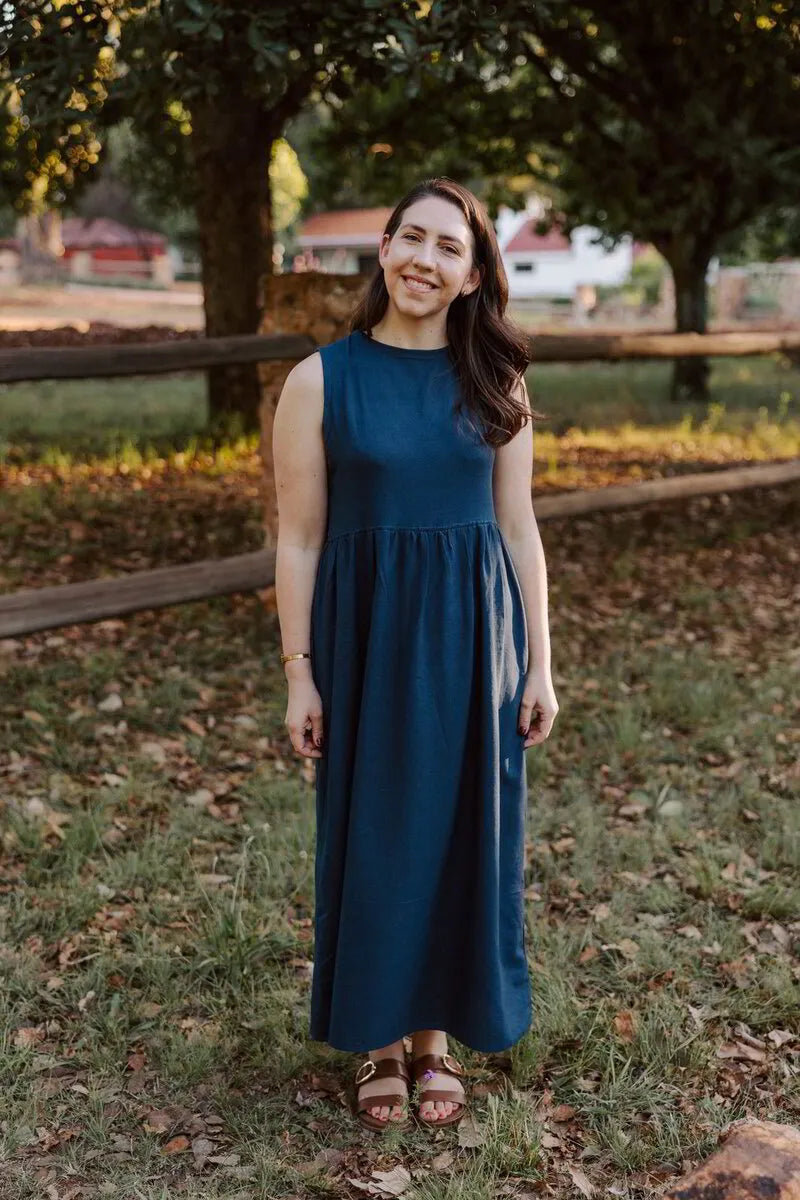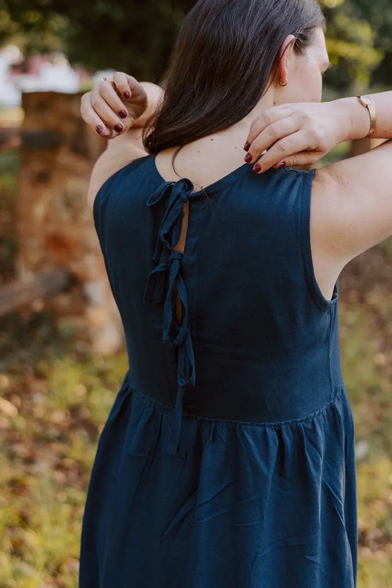 Description : Sleeveless maxi length dress with two side pockets. Can be worn forwards or backwards. it has three ties... Read more