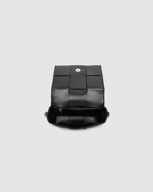 The Josephine Black Crossbody Bag is a statement in both texture and versatility, designed to deliver effortless elegance from day to night. Crafted from woven vegan leather panels, she offers a modern twist on classic texture, adding a refined edge to everyday styling. This women’s woven handbag features a structured silhouette with a magnetic closure to keep your essentials secure, while light gold hardware lends a polished finish. With two interchangeable straps: a sleek vegan leather crossbody and a gold, short shoulder chain strap – Josephine Black adapts to suit your style. Wear her crossbody for hands-free ease, on the shoulder for elevated occasions, or remove both straps for a sophisticated clutch moment. Thoughtfully designed for both function and flair, Josephine Black is the perfect plus-one for long lunches, late nights, and everything in between.