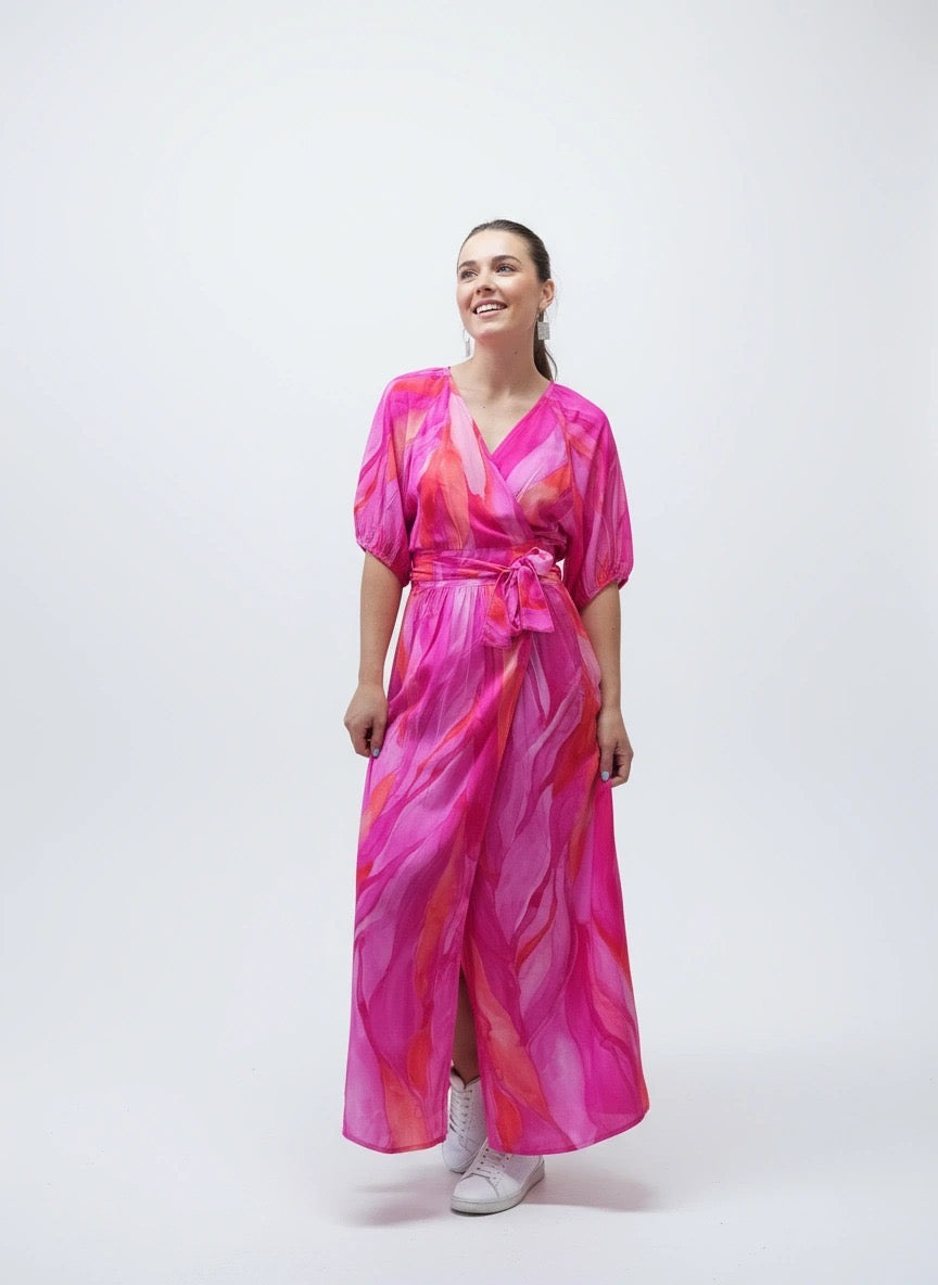 Super comfy wrap dress that is feminine and elegant. Featuring soft bubble raglan sleeves and maxi length. Length from under arm to hem is 117cm.