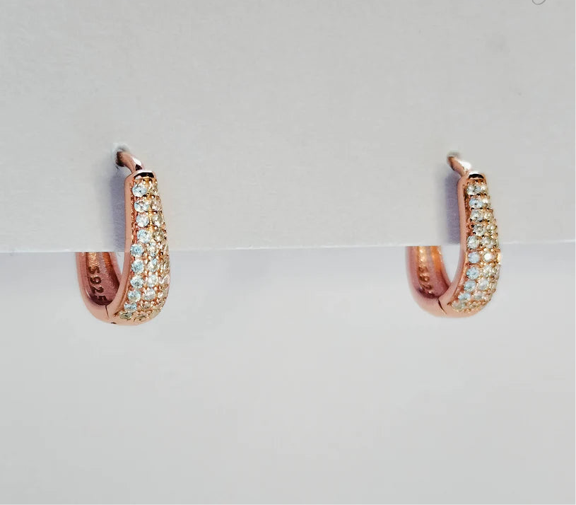 Sterling Silver Sparkling Huggie Hoop Earrings- Rose gold